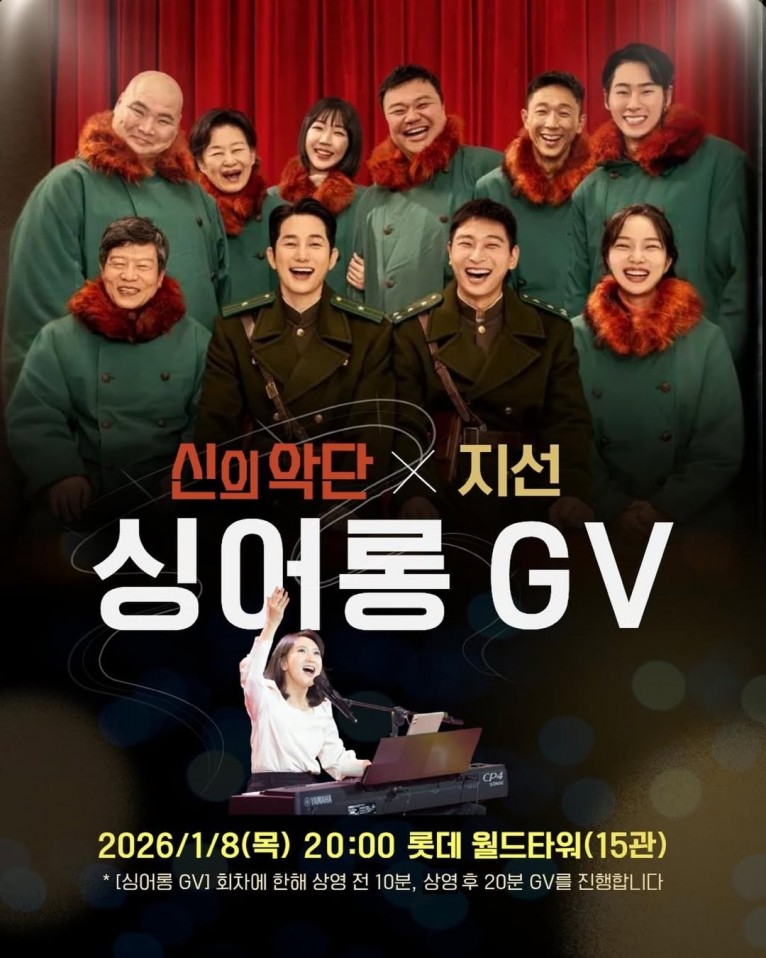 1월 8일 목요일 저녁 8시, 잠실 롯데 월드타워(15관)에서 '은혜'를 부른 찬양사역자 지선과 함께하는 영화 '신의악단' 싱어롱 GV가 열린다.